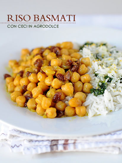 Teoricamente il periodo dei legumi sarebbe dovuto finire con l'avvento della primavera, invece ci sono giorni in cui sento la necessità di mangiarne in quantità, anche se mia madre dice che i legumi "non più di due volte alla settimana!". Non so, per quel che mi riguarda, il bisogno di mangiare legumi è proporzionale alla mancanza di carne nella mia dieta, che ormai si è ridotto a zero. Abbinare l'uvetta sultanina ai ceci mi è balzato in mente per ottenere un accostamento un po' più esotico, di vaga ispirazione indiana. Complice un mazzetto di coriandolo fresco che un po' come il basilico e il prezzemolo è diventato parte delle mie erbe preferite, da mangiare s'intende! Il tutto si sposa in maniera esemplare, il dolce dell'uvetta con l'agro del limone, accompagnato con del semplice riso basmati. come si legge, in Urdu, sulla foto.