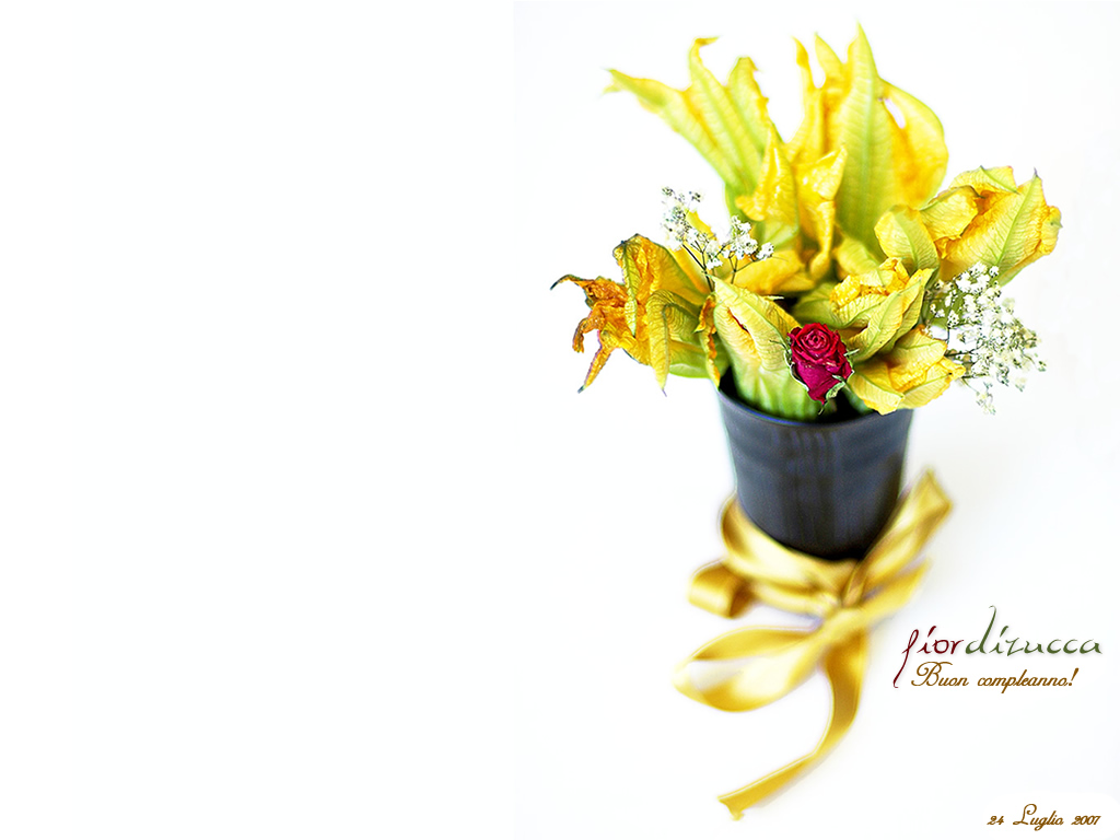 La mia ricetta con i fiori di zucca che vedete in alto, sarà postata nei prossimi giorni, ma voi, questi fiori come li fate? Preparate la vostra ricetta corredata con foto e postatela sul vostro blog. Cercate di essere creativi (i fiori di zucca fritti per esempio li conosciamo già tutti, aggiungete un tocco personale) poi mandate un email all'indirizzo che ben conoscete fiordizucca at gmail punto com con il link al post in questione. Raccoglierò tutte le ricette in un unico .pdf scaricabile. C'è tempo fino alla fine di agosto! (valgono anche le ricette già pubblicate prima di oggi)